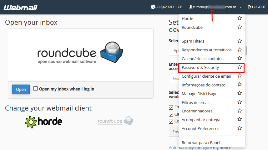 3. Clique na “conta de e-mail“, em seguida clique em “Password & Security“;